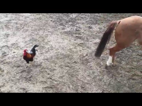 Петух показывает технику нажима/отпуска на непослушной лошади.